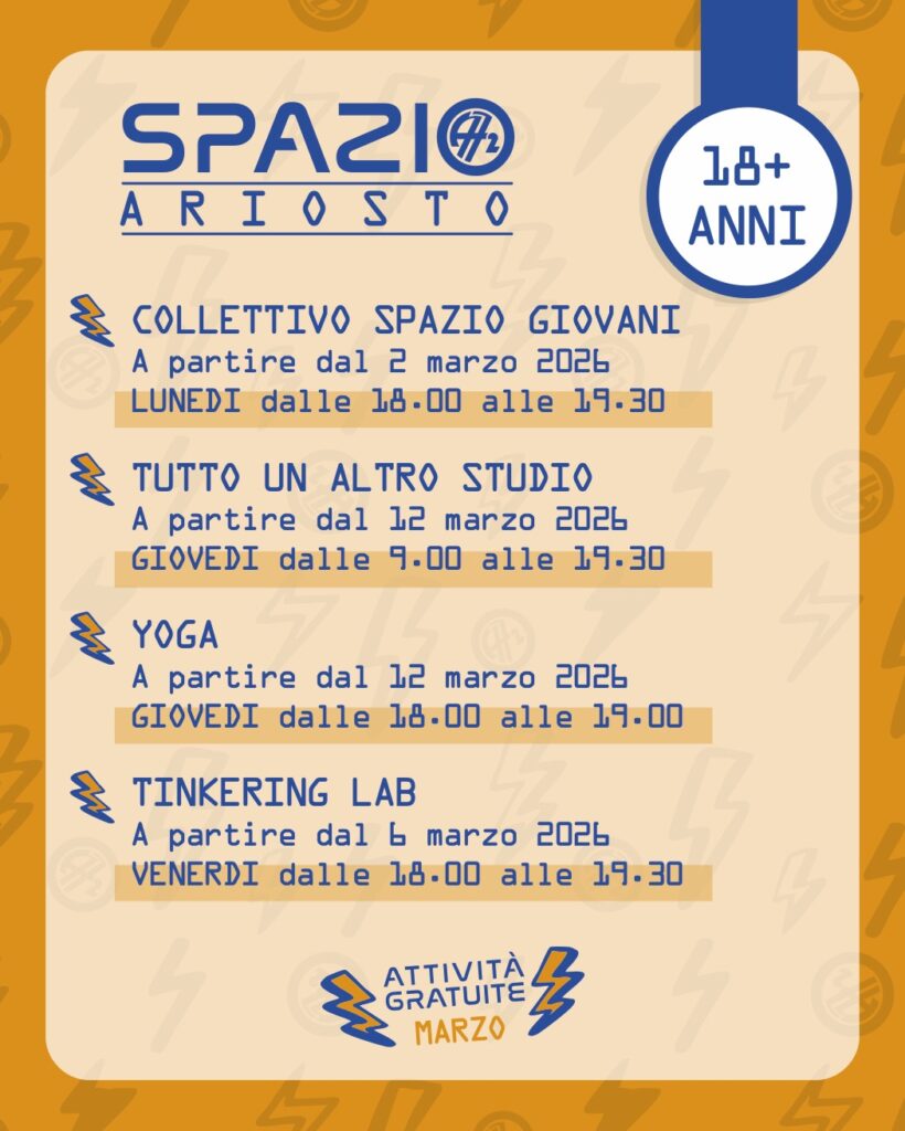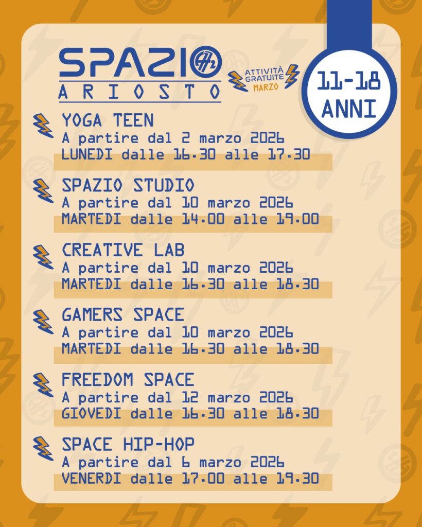 Tutti i laboratori saranno gratuiti per il mese di Marzo! COLLETTIVO SPAZIO GIOVANI A partire dal 2 marzo 2026 Uno spazio in cui ragazze e ragazzi possano essere protagonisti, condividere idee e trasformarle in progetti concreti. Un laboratorio di comunità e co-progettazione, capace di generare iniziative per il territorio e opportunità anche oltre i confini […]